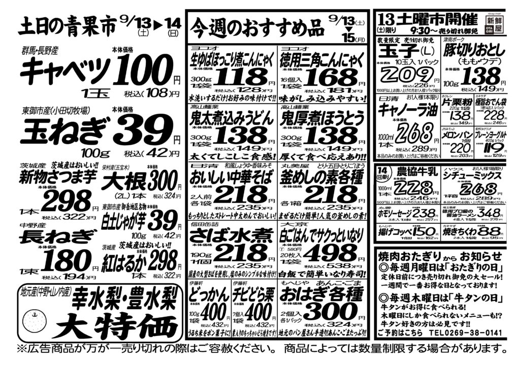 今週のチラシ9月13日(土)~9月15日(月)