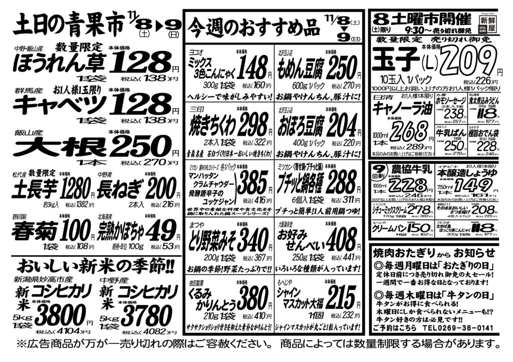 今週のチラシ11月8日(土)~11月9日(日)