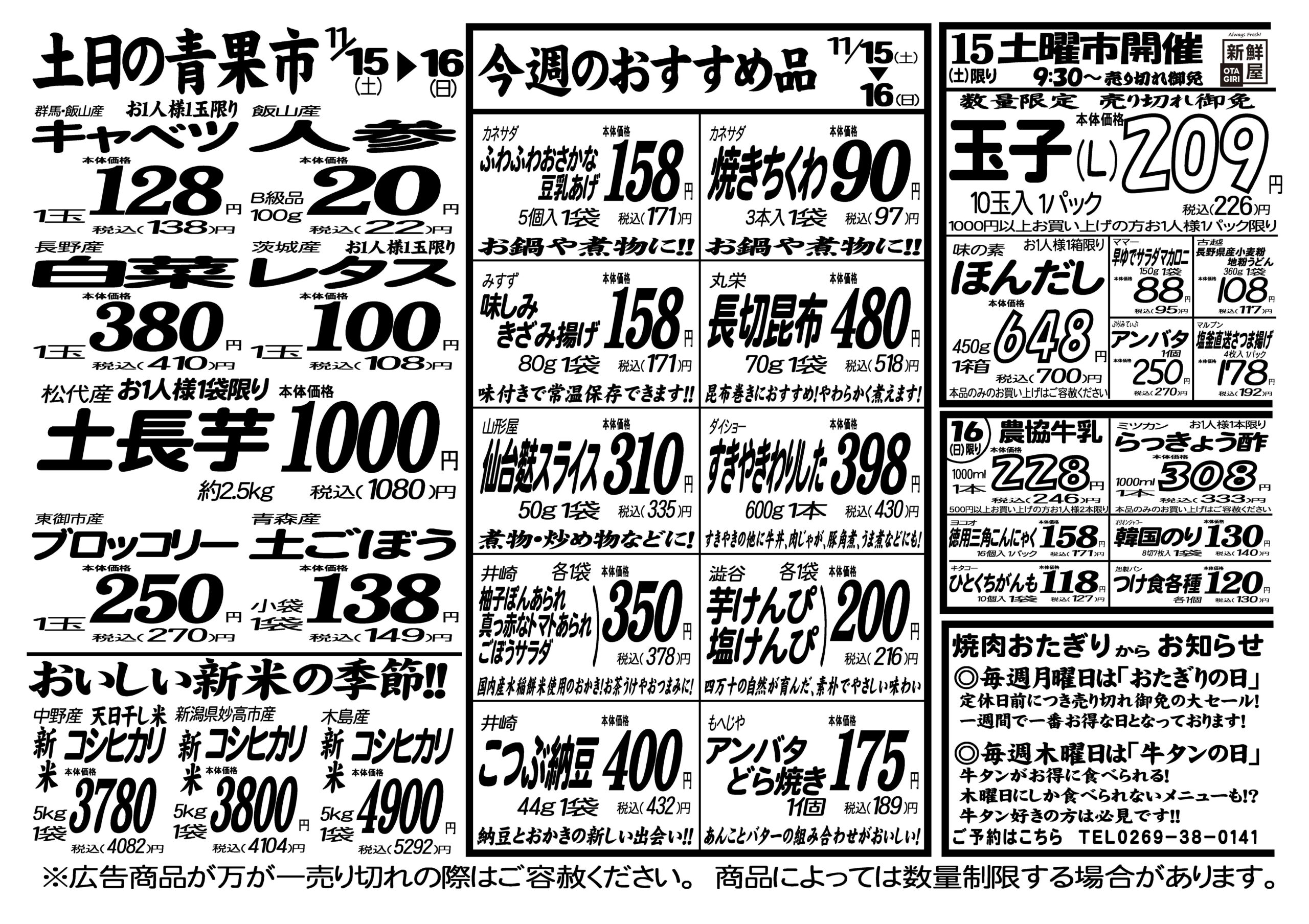今週のチラシ11月15日(土)~11月16日(日)